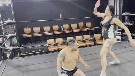 This powerful, 6 foot tall woman piledrives her smaller male opponent and dominates him in the ring!